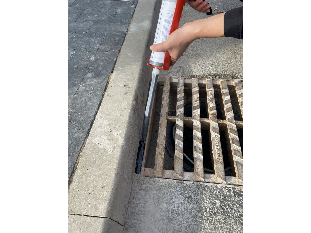 REFUG 100 je inovativní dvousložková zálivková hmota, která vyniká schopností rychle a efektivně opravit spáry podél povrchových armatur inženýrských sítí, jako jsou poklopy, šoupata a vpusti. Díky své hmotnosti 425 g je snadno manipulovatelný a vhodný pro různé typy povrchů včetně asfaltobetonových a cementobetonových, které byly předtím ošetřeny REAKTIV PRIMERem. Je navržena pro snadnou aplikaci pomocí pistole, což zajišťuje precizní vyplnění trhlin v celé jejich hloubce. Díky reaktivnímu vytvrzování se při procesu neuvolňují žádná rozpouštědla, což zajišťuje ekologičtější a bezpečnější použití.